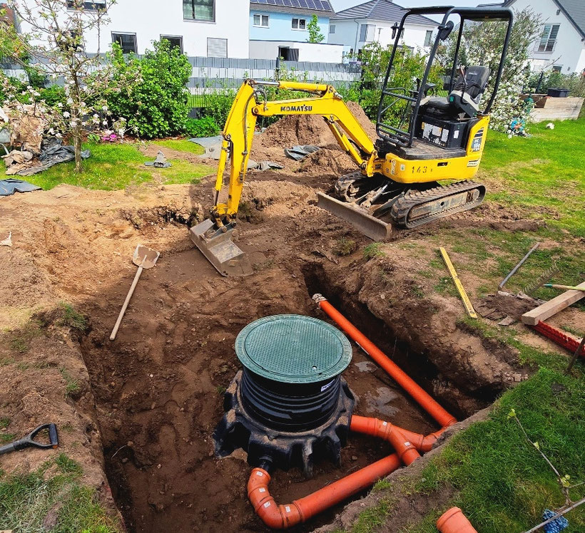 Ob für den Neubau oder die Gartenmodernisierung. Mit einer Zisterne oder Rigole schaffen Sie eine sichere und nachhaltige Lösung zur Regenwassernutzung oder Versickerung. Wir übernehmen Planung, Erdarbeiten, Einbau und den fachgerechten Anschluss.